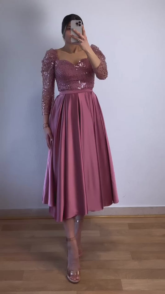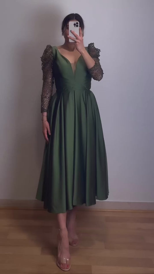 Midikleid mit verzierten Ärmeln