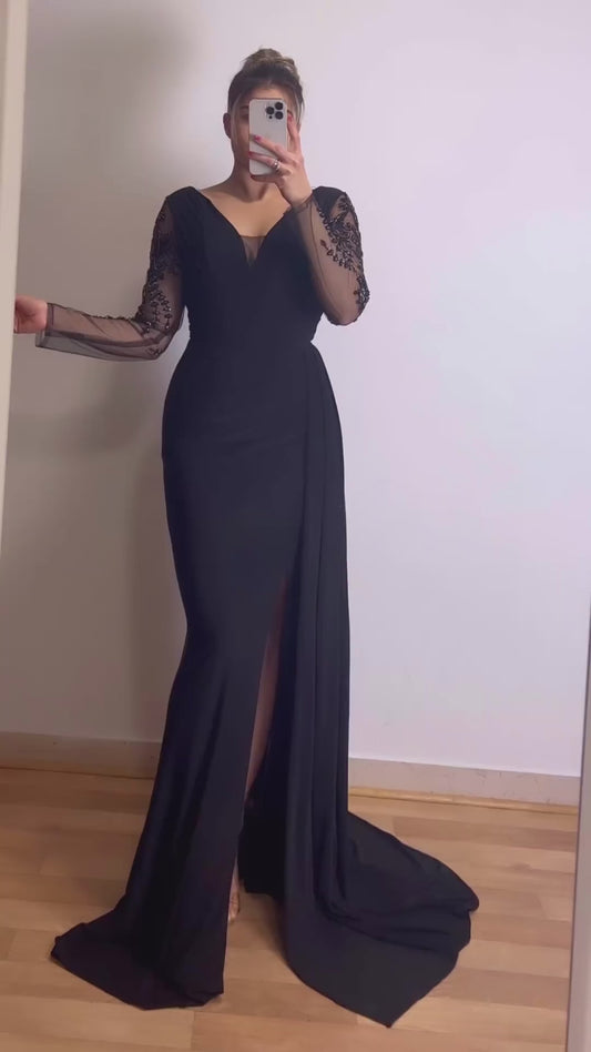 Langarm Maxikleid mit Applikationen