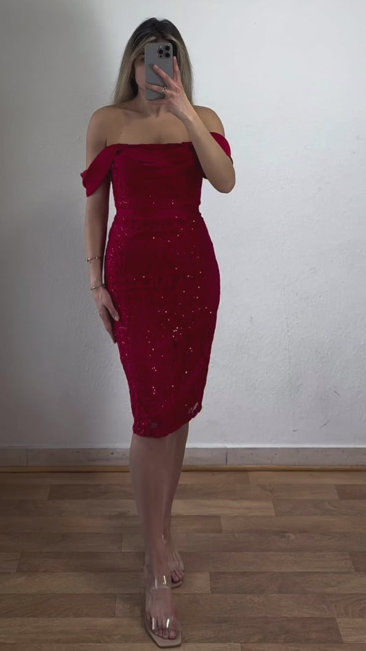 Off-Shoulder Maxikleid mit Spitzendetails