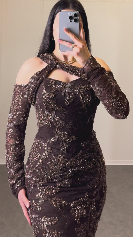 Off-Shoulder Perlenkleid