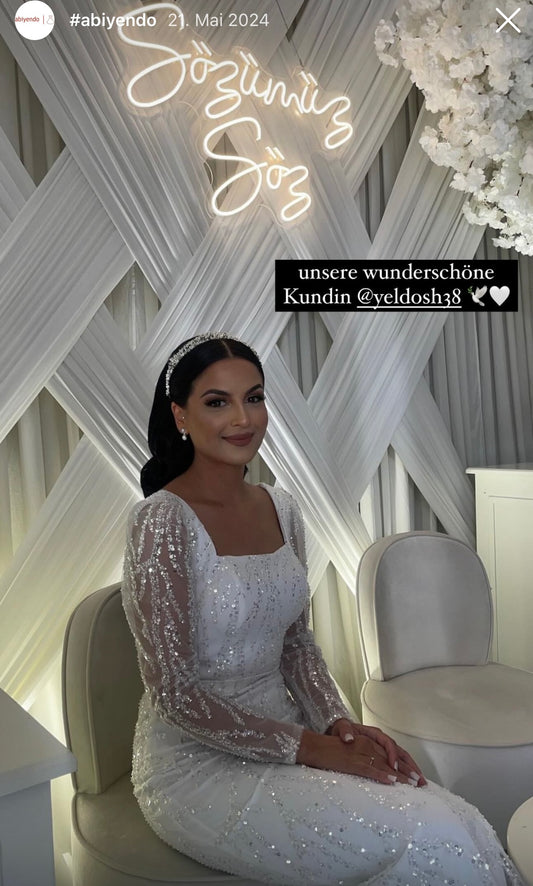 Langarm Maxikleid mit Schleppe