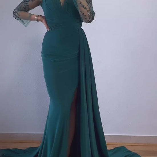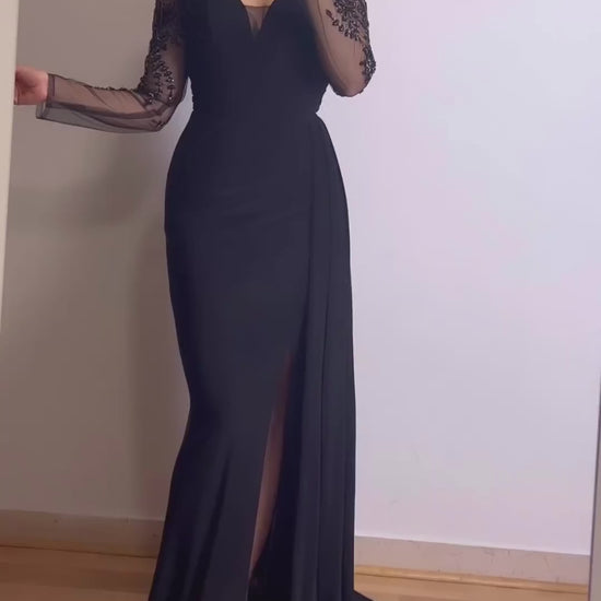Langarm Maxikleid mit Applikationen