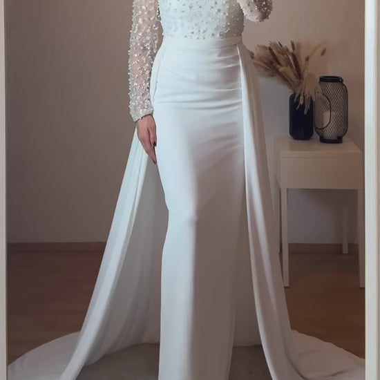 Langarm Maxikleid mit Schleppe