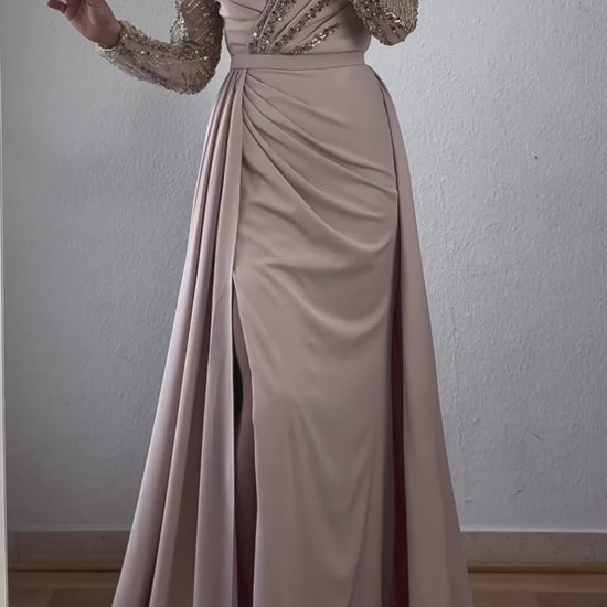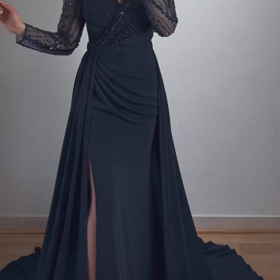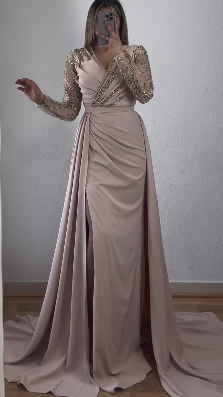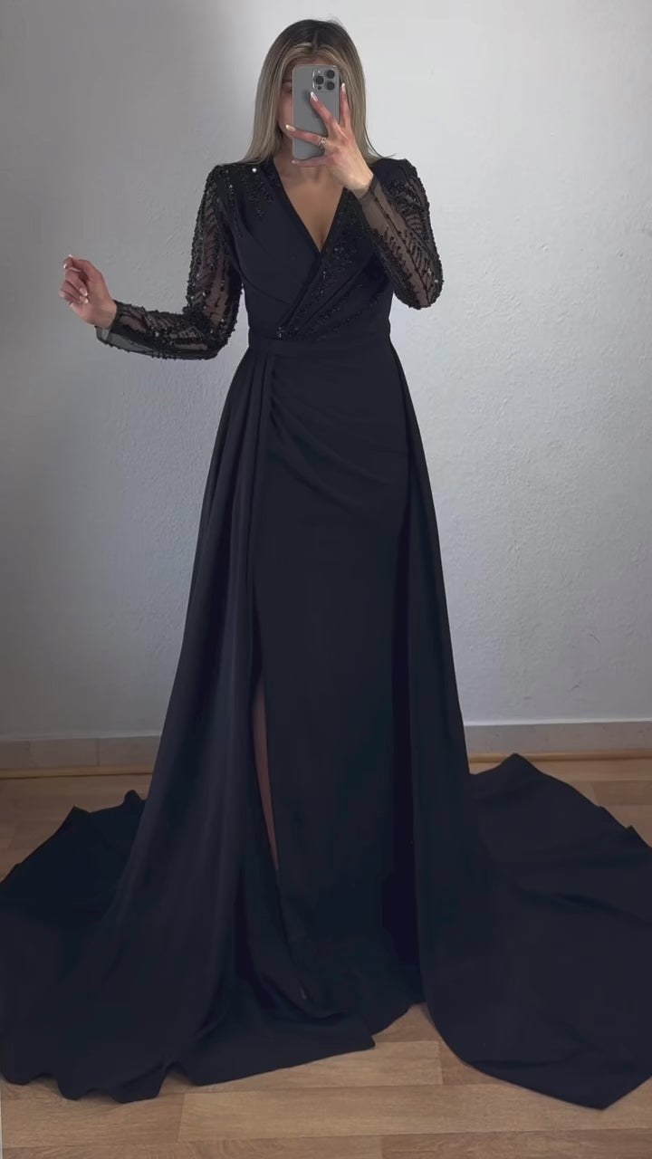 Langarm Maxikleid mit Schleppe