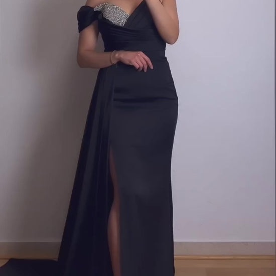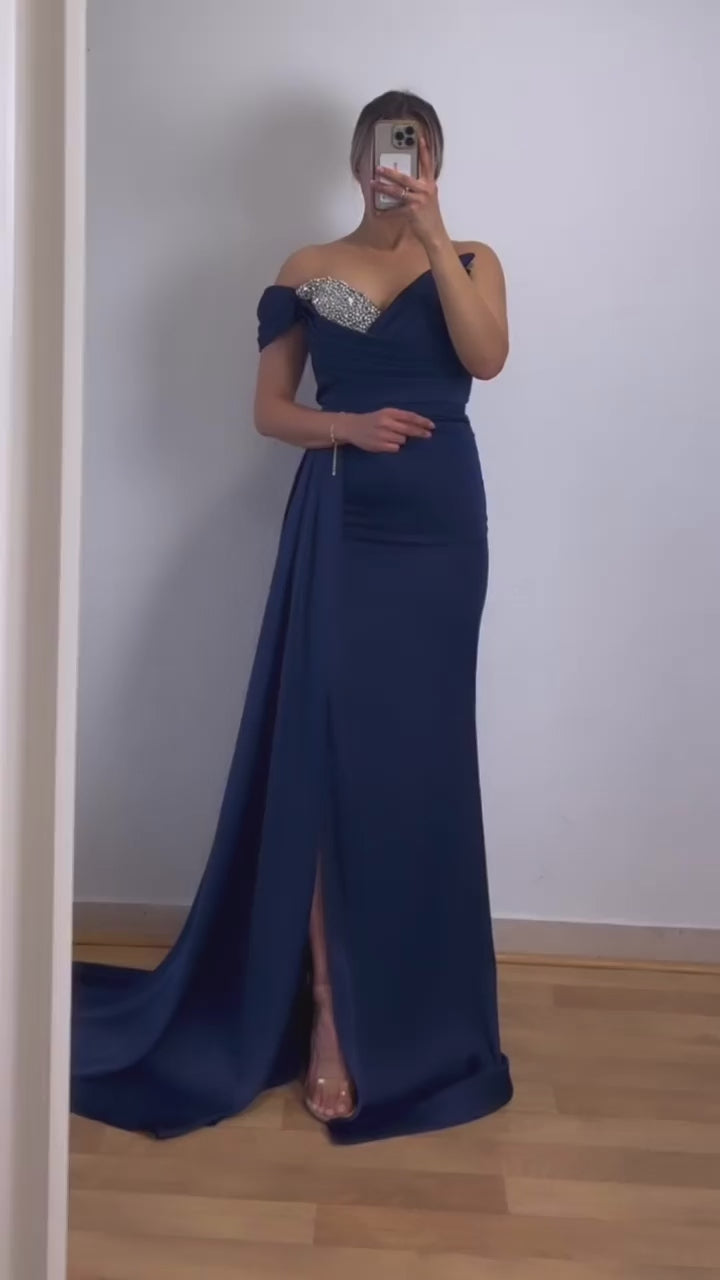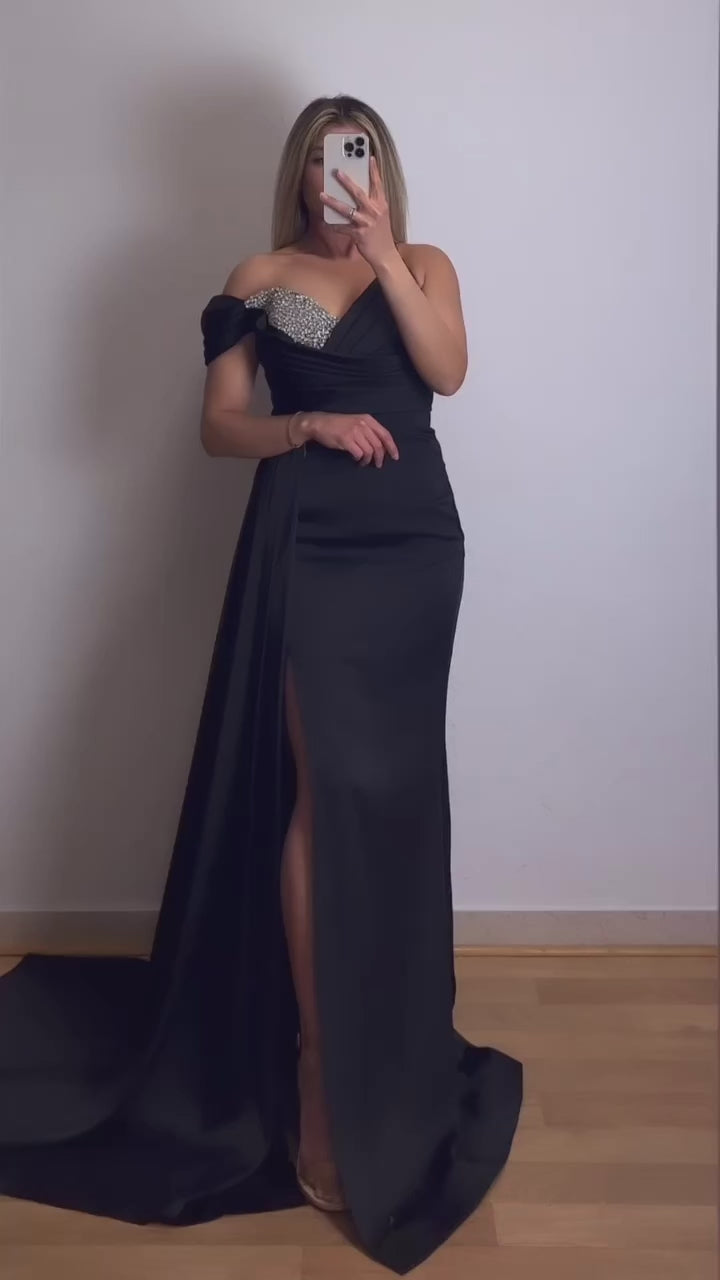 One-Shoulder Kleid mit Steinchendetails
