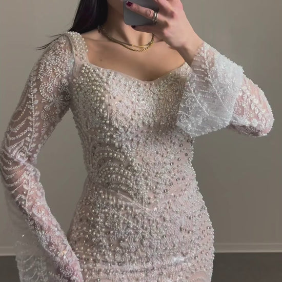 Langarm Maxikleid mit Perlen