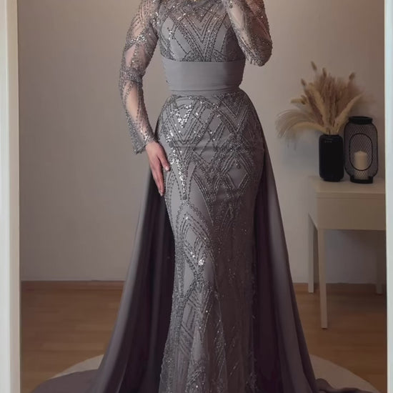 Maxikleid mit abnehmbarer Schleppe